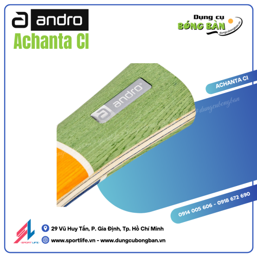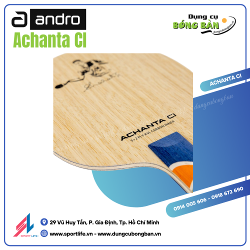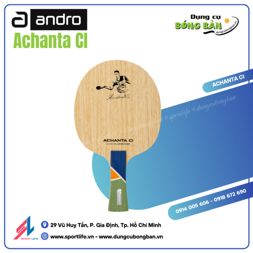 Andro Achanta CI là dòng cốt vợt tấn công kiểm soát (OFF) được phát triển cùng huyền thoại bóng bàn Kamal Sharath Achanta. Cốt vợt được thiết kế dành cho người chơi topspin hiện đại, yêu cầu cảm giác bóng rõ ràng, độ xoáy cao và khả năng kiểm soát tốt trong những pha tấn công biến hóa.