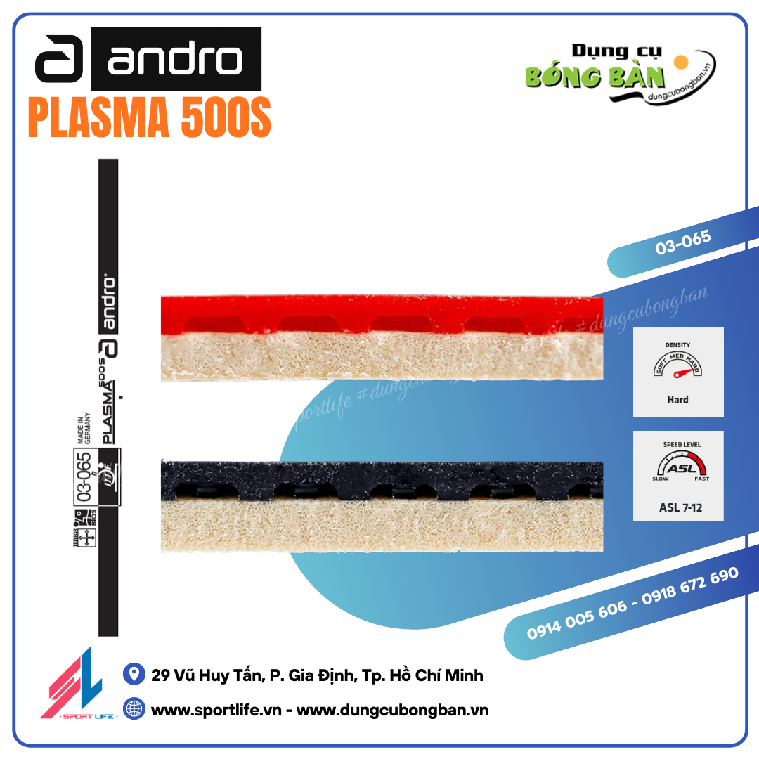 - Mặc dù có sponge cứng, andro PLASMA 500S vẫn mang lại feedback rõ ràng, giúp kiểm soát tốt trong các pha gò bóng, chặn bóng (block) và đỡ giao bóng.