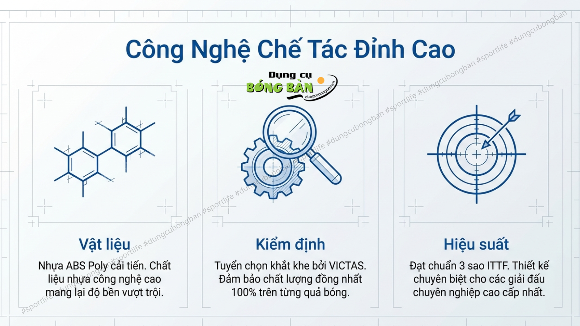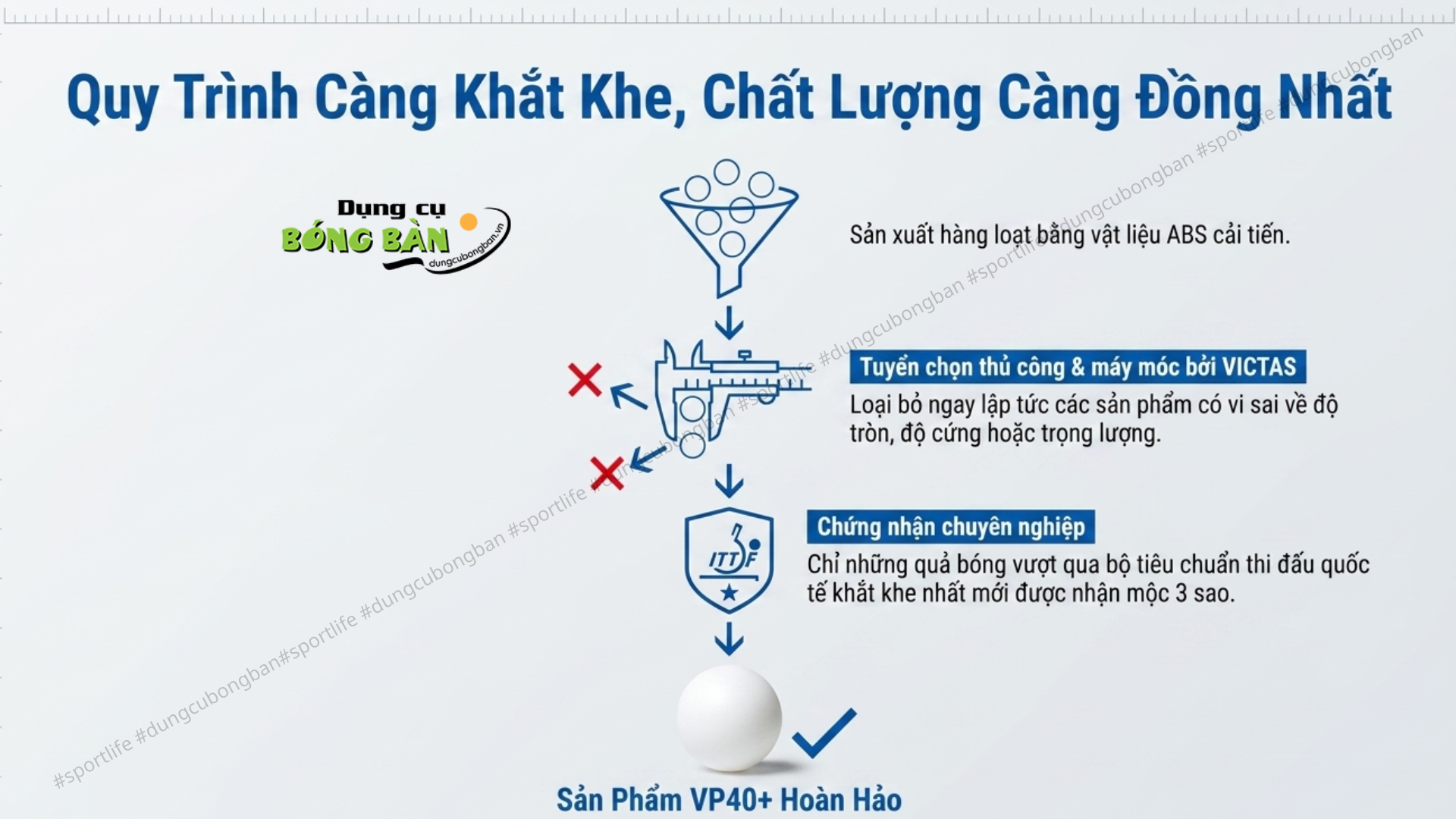 Sử dụng chất liệu nhựa ABS poly thế hệ mới, VP40+ mang đến sự cải tiến rõ rệt về độ bền và khả năng giữ form bóng. Kết hợp với quy trình tuyển chọn nghiêm ngặt từ VICTAS, mỗi quả bóng đều đảm bảo chất lượng đồng đều khi đưa vào thi đấu.