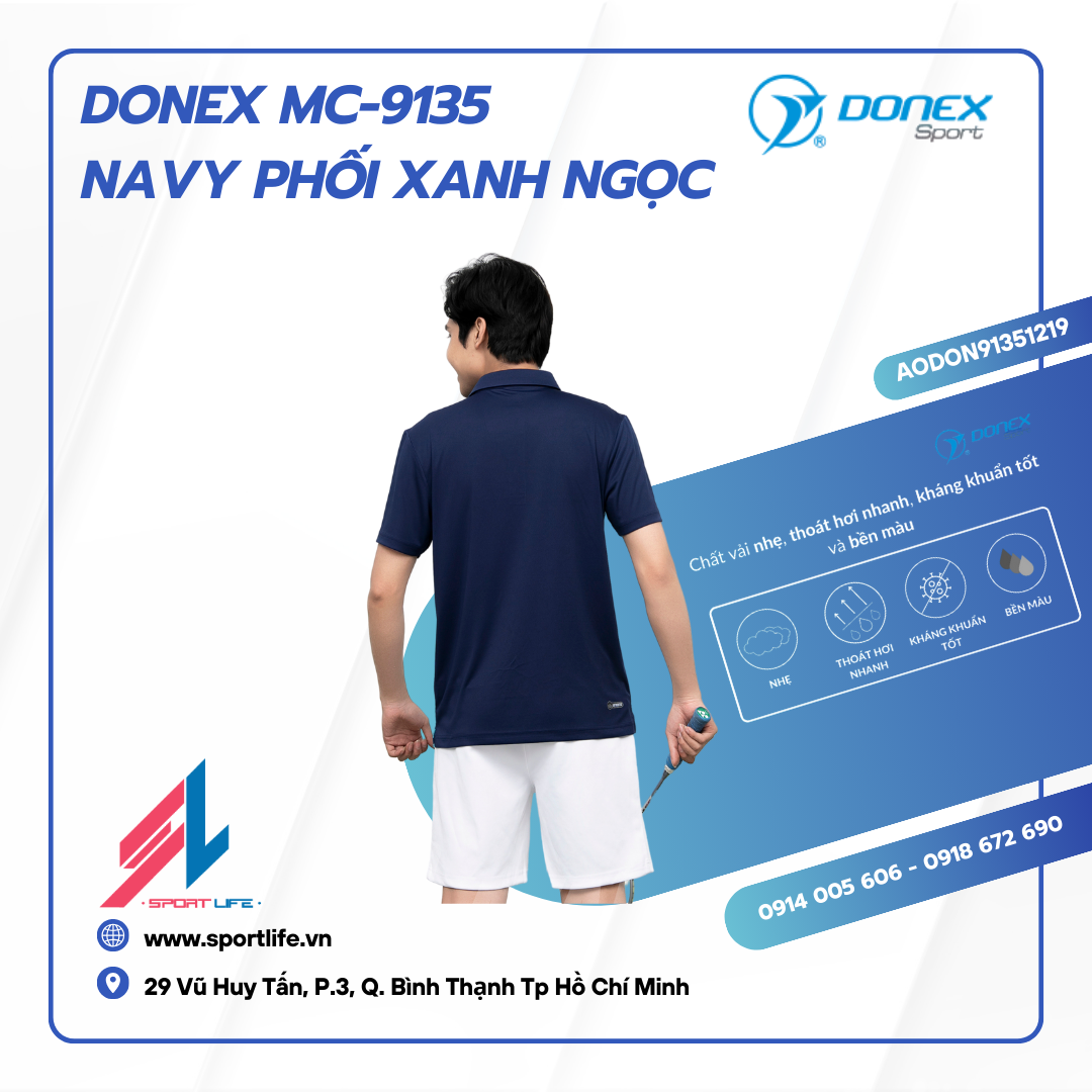 Linh hoạt và tự do vận động: Áo Donex MC-9135 được thiết kế tối ưu cho từng chuyển động, từ những cú smash mạnh mẽ đến các pha di chuyển nhanh nhẹn.