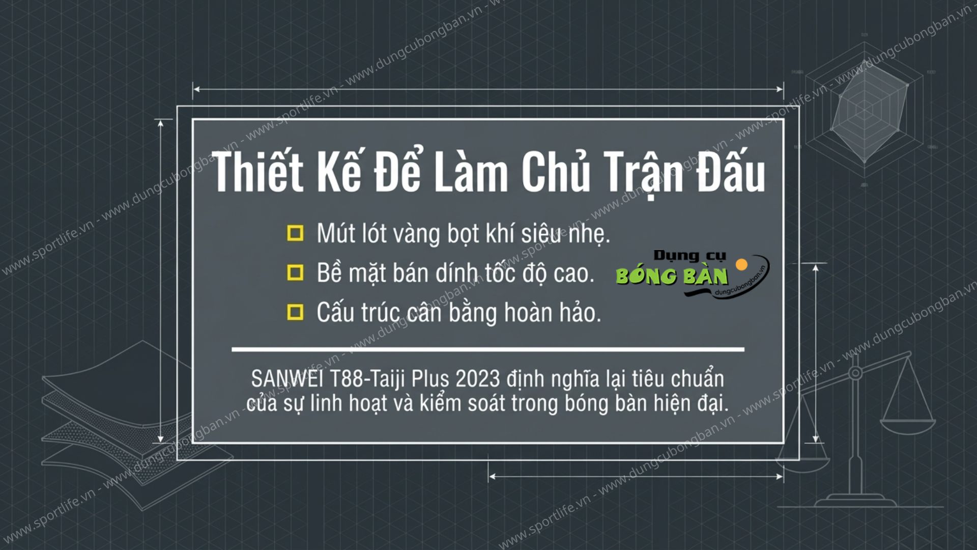 SANWEI T88-TAIJI PLUS chính là lựa chọn đáng cân nhắc với sự cân bằng giữa tốc độ – độ xoáy – cảm giác bóng, đặc biệt phù hợp cho người chơi lối đánh hiện đại.