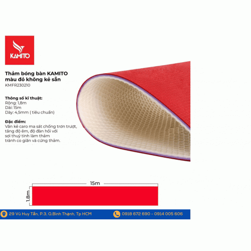 Thảm bóng bàn FR18103 với độ dày 4.5 mm được bảo hành 2 năm