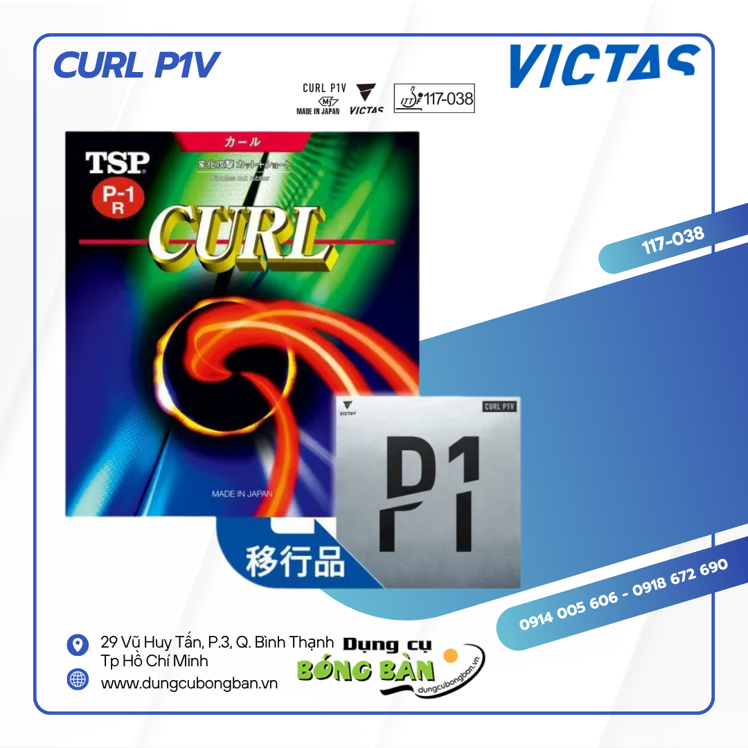 Victas CURL P1V là sản phẩm mặt vợt gai dài cao cấp đến từ thương hiệu Victas của Nhật Bản, nổi bật trong giới bóng bàn bởi khả năng tạo xoáy ngược (spin reversal) cực kỳ hiệu quả. Với thiết kế đặc trưng gồm gai dài, mảnh, mềm và bề mặt nhám, CURL P1V trở thành sự lựa chọn hàng đầu của các tay vợt phòng thủ chuyên nghiệp trên toàn thế giới.
